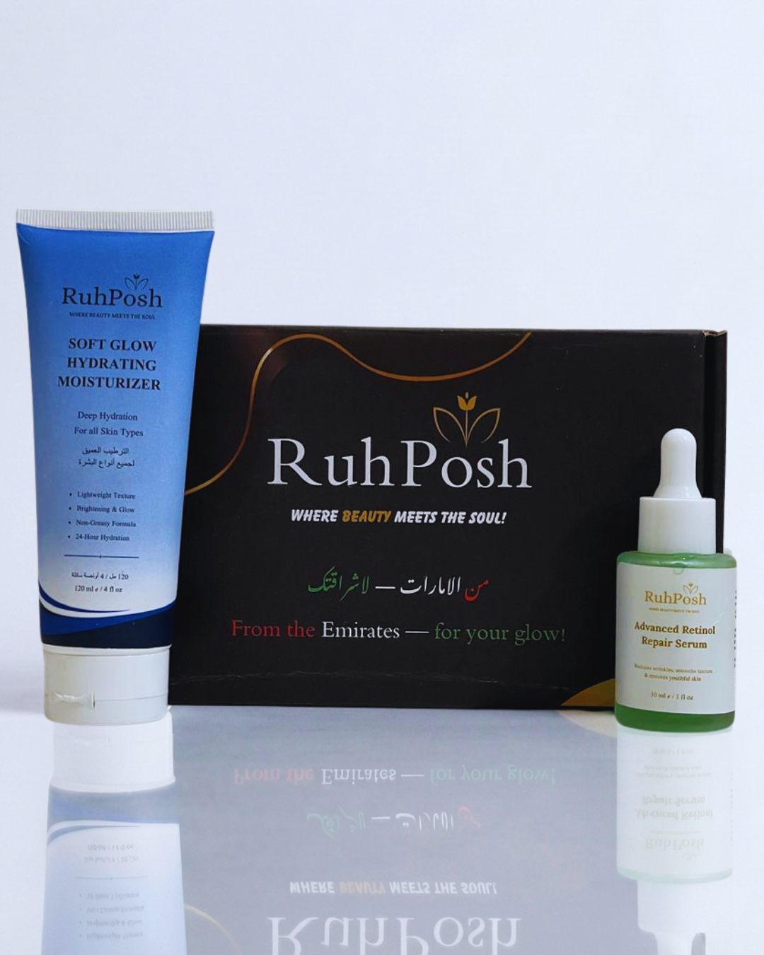 هو روتين ليلي صُمم لنتائج حقيقية—دون المساس براحة بشرتك. يساعد "سيروم الريتينول المطور للإصلاح" على تحسين ملمس البشرة المتعبة بمرور الوقت، بينما يمنحك "مرطب الإشراق الناعم" ترطيباً مهدئاً، لتستيقظي ببشرة متوازنة ومفعمة بالحيوية كل صباح.